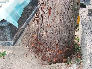 Pień zdrowego drzewa po wycięciu wystarczy zalać betonem i śladu nie ma...